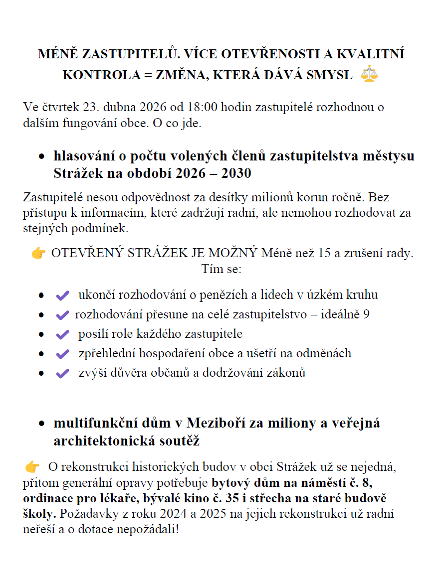📍 zasedání zastupitelstva městysu Strážek